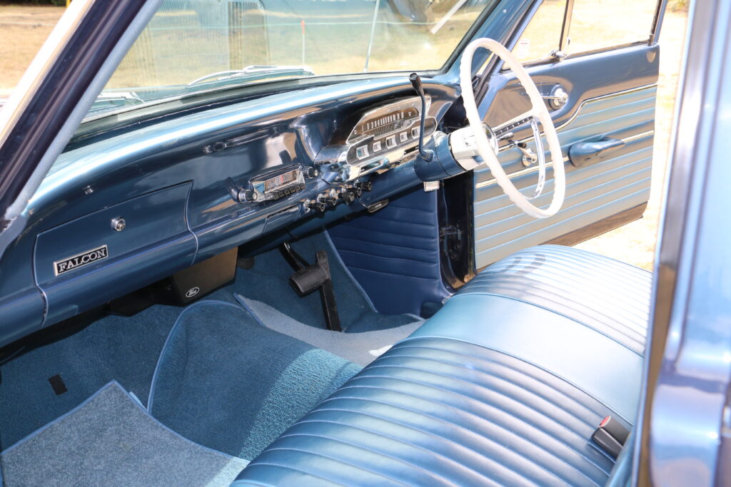 Lorraine and I had photocopied the original sales invoice and other documentation and were taping them to the inside of the passenger-side rear-door glass when I noticed a gentleman watching what I was doing. He said, and I quote, “I sold this car new. There’s my signature there,” pointing to the ‘salesman’ signature. ‘Harold Heasley’, it read. I turned around to look at him in astonishment, and sure enough, there he was, the Harold Heasley. Harold was the 1959/60 NZ Saloon Car Champion. Not driving a Ford, though. He had raced a Mark I, and later Mark II Ford Consuls, but won the championship in a Humber 80! I’m sorry to report Harold passed away in August 2011. I would now have liked to have chatted to him about his career with Palmer and Doak and his memories of these X Series Falcons — a lesson here is not to put planned things off!